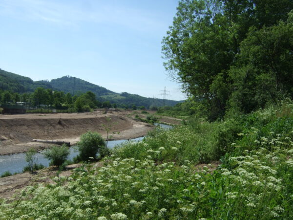 Entlang des linksseitigen Hörselufers, in Fließrichtung geblickt, sichern Wasserbausteine die Böschung. Derzeit wurde der Fokus darauf gelegt das Material einzubringen. Strukturelemente, wie eine variable Uferlinie, der Einbau von Buhnen und die Errichtung von Fischunterständen sind ebenfalls Gegenstand der Baumaßnahme. Diese Maßnahmen sind zu einem späteren Zeitpunkt vorgesehen.